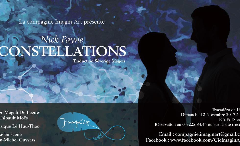 C’est pourquoi nous avons choisi de vous présenter la pièce à grand succès, « Constellations » de Nick Payne (traduction Séverine Magois) au Théâtre du Trocadéro de Liège le 12 novembre 2017 à 17h.